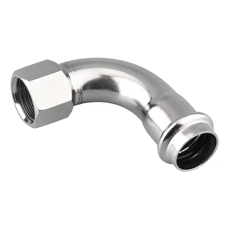 Koleno na konverziu vnútorného závitu s dvojitou svorkou 90 stupňov je špecializovaná tvarovka, ktorá dosahuje 90-stupňovú zmenu smeru v potrubí pri pripájaní ku komponentom s vnútorným závitom. Produkt vyrobený spoločnosťou Shenchi Factory sa vyznačuje predovšetkým jednoduchou inštaláciou. Je vyrobený pomocou integrovaného kovania z nehrdzavejúcej ocele. Jeden koniec je vybavený jedným lisovaným rozhraním na pripojenie k rúram, zatiaľ čo druhý koniec má presné vnútorné závity, čo umožňuje bezproblémovú konverziu a pripojenie k rôznym typom komponentov. Nie je potrebné zváranie; zaisťuje sa jediným zalisovaním pomocou špeciálneho nástroja. Tesniaca štruktúra je tesná, zabraňuje úniku a je odolná voči vysokému tlaku a korózii. Flexibilne sa prispôsobuje usporiadaniu potrubí v scenároch, ako je zásobovanie vodou, kanalizácia a HVAC. Ponúka efektívnu inštaláciu a pohodlnú neskoršiu údržbu a poskytuje stabilné riešenie pre zmeny smeru potrubia a prechody.